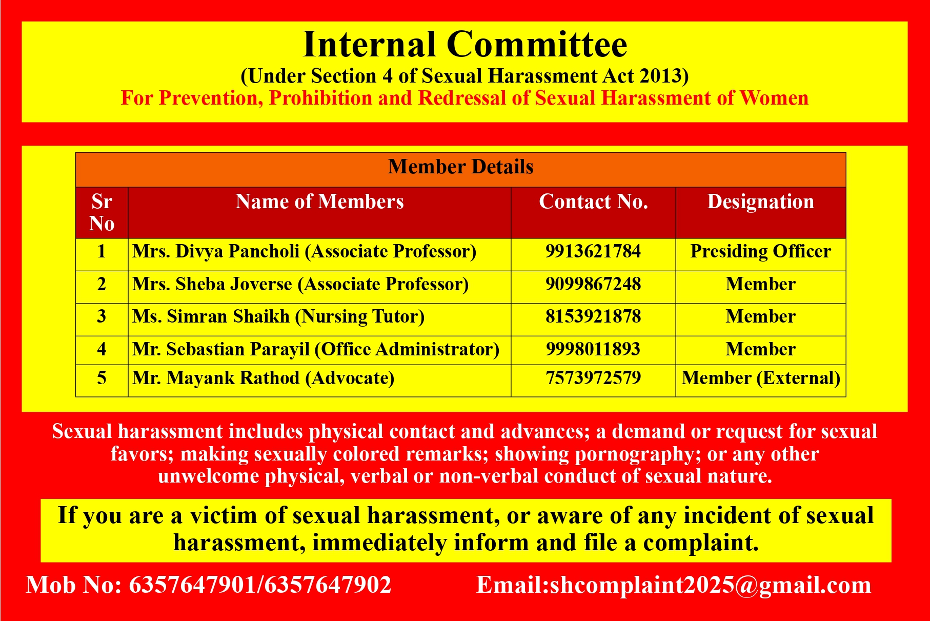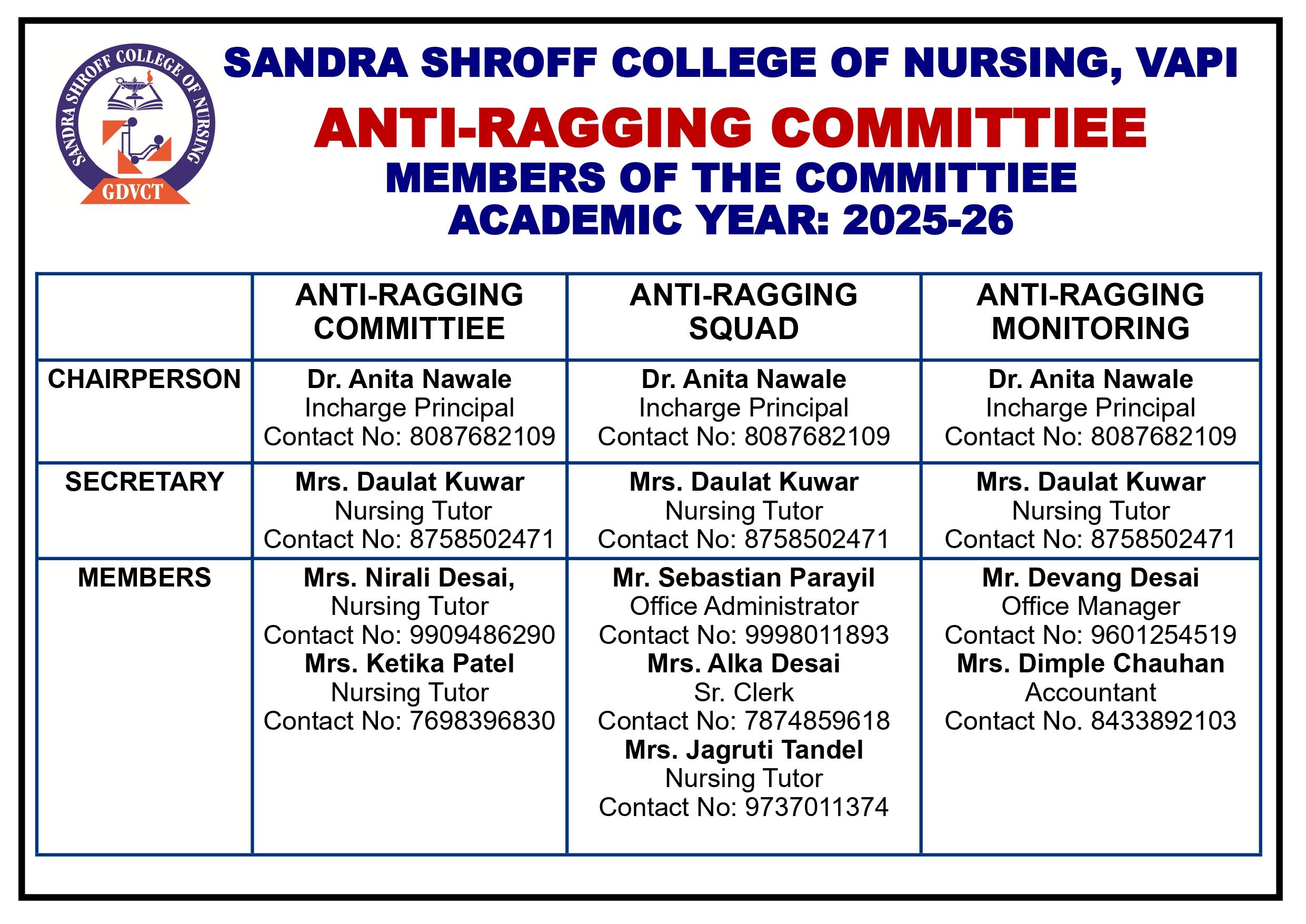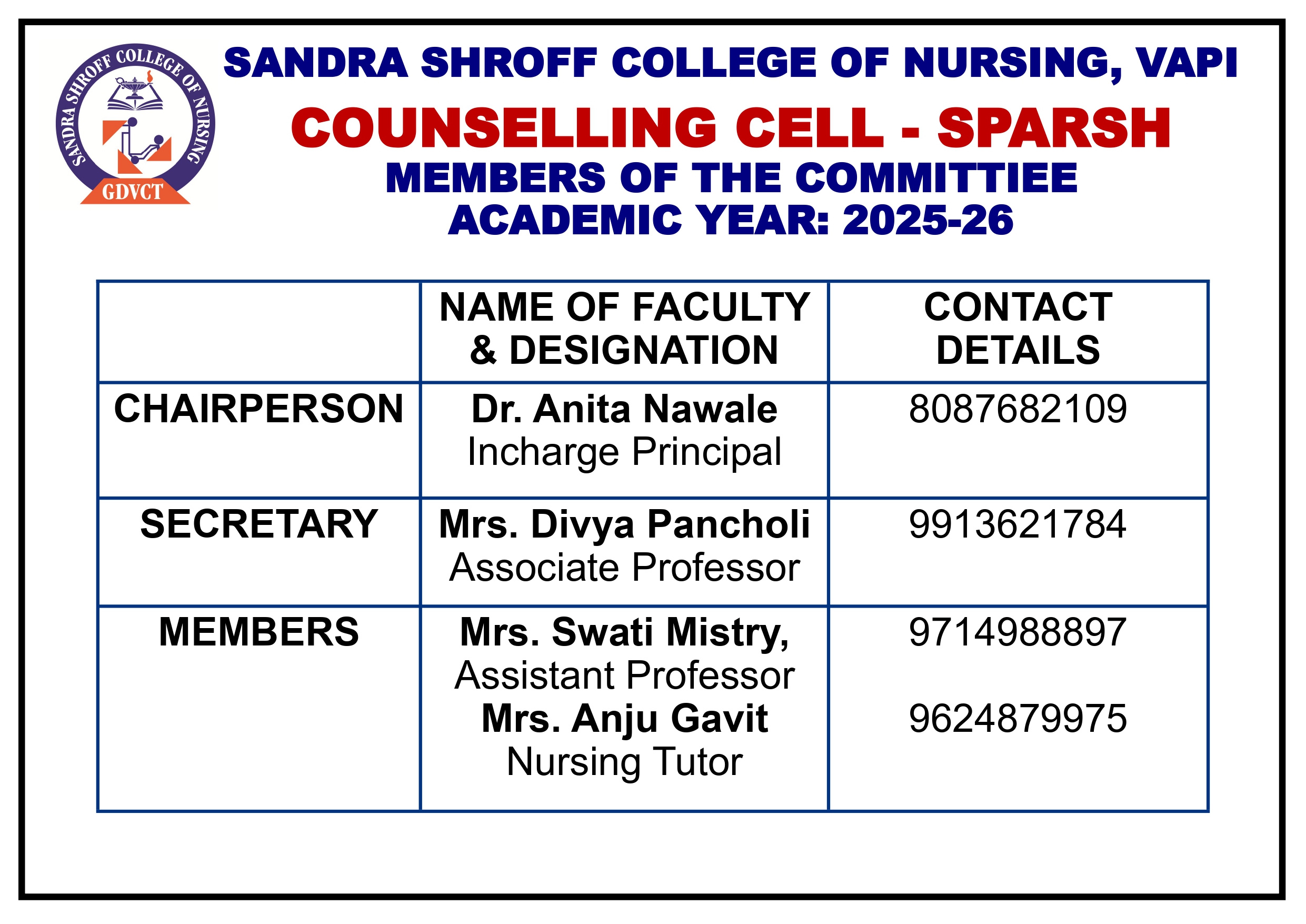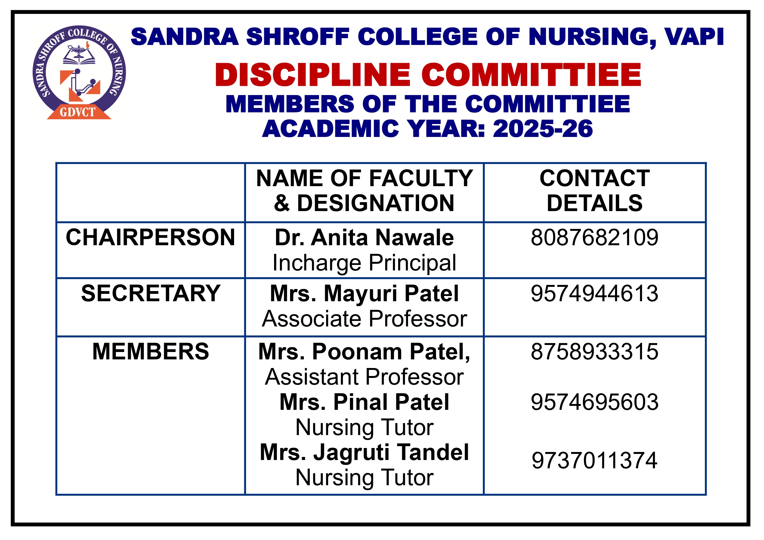College have qualified & experienced faculty and teacher student ratio is maintained as per INC & GNC norms.